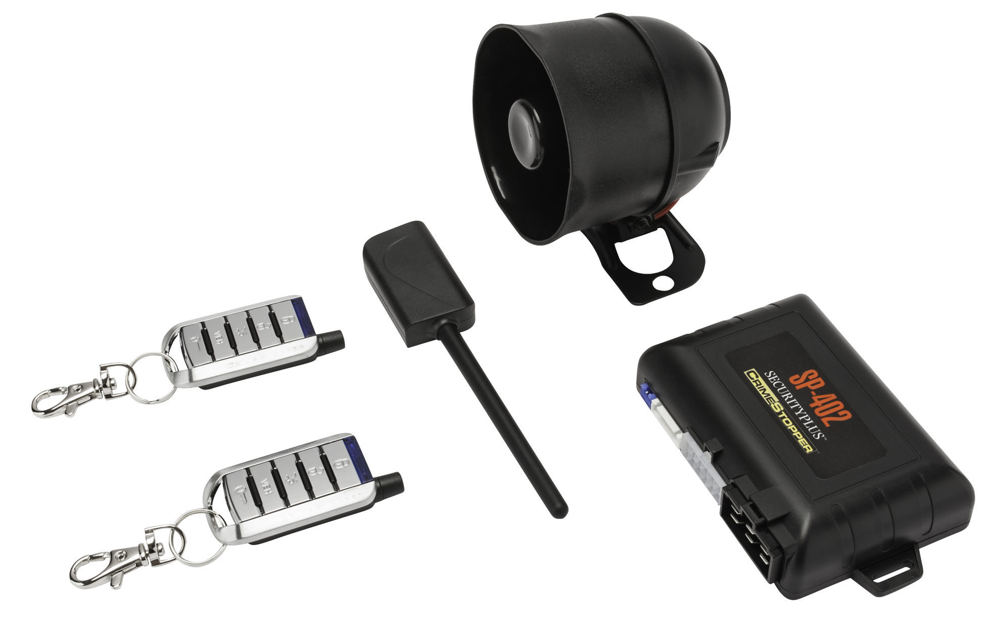 The CrimeStopper SP-402 is our first of universal remote start and security all in one system. This system comes with 2 (5) button remotes with up to 1500 ft. of range. The system offers all of the features that our security and remote start systems offer all in 1 system. No need for a remote to control your alarm and another remote to control your remote start. This system offers dual 2-way data ports for both our OFA integration modules as well as Fortin integration modules. Also with a quick programming change and the addition of our 2-way upgrade kit it can become a full 2-way remote start and alarm combo.